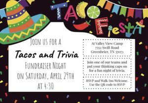 Join us for a Tacos and Trivia fundraiser night on Saturday, April 29th, at 4:30pm!